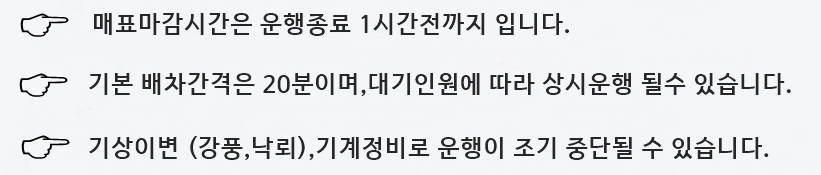 - 탑승 당일에만 순차 발권, 사전 예약 불가.