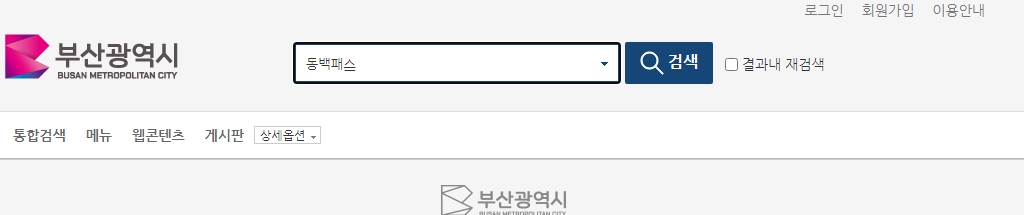 검색 결과 화면에서는 동백패스 제도의 상세한 소개와 구체적인 신청 절차, 그리고 사용 시 유의사항 등을 담은 메뉴를 발견할 수 있습니다.