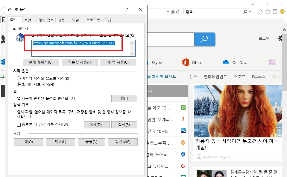 네이버 시작페이지로 바꾸기 (인터넷 익스플로러)
