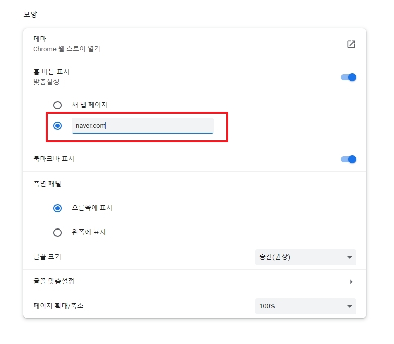 크롬 브라우저 네이버 시작페이지 설정