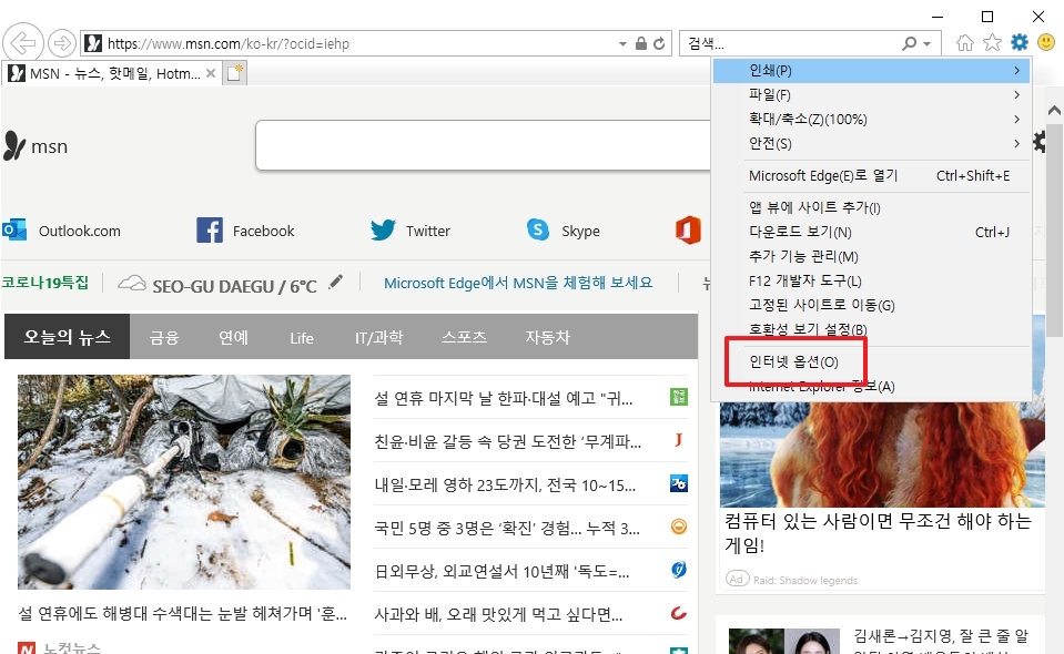 네이버 시작페이지로 바꾸기 (인터넷 익스플로러)