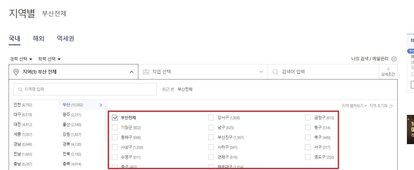 부산 지역 채용 공고 리스트
