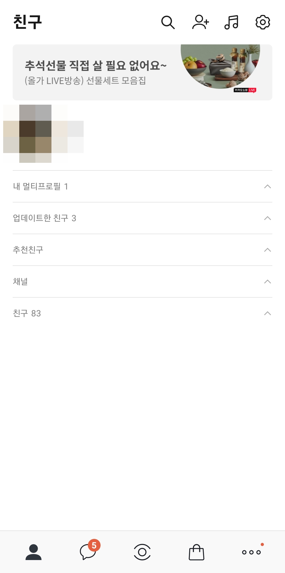 마지막 세 번째가 진짜 '카카오톡 번역' 기능을 쓰는 법이에요. 이건 키보드 기능이랑은 또 다른 건데요. 카카오톡 친구 목록 화면에서 맨 위에 있는 돋보기(검색) 아이콘을 눌러보세요.