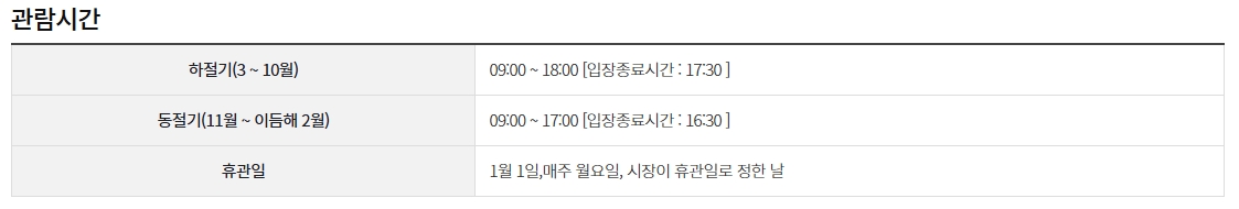 가장 중요한 관람 시간 정보에요. 계절에 따라서 문 닫는 시간이 다르니까 꼭 확인해야 해요. 날씨가 따뜻한 3월부터 10월까지, 즉 하절기에는 아침 9시부터 저녁 6시까지 문을 열어요. 하지만 적어도 5시 30분까지는 들어가셔야 관람이 가능하니 늦지 않게 도착하는 게 중요해요.