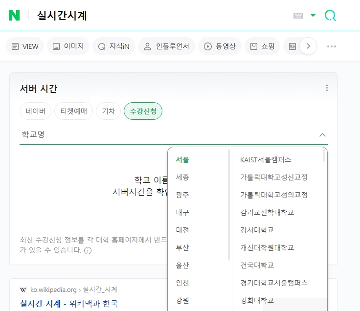 본인이 다니는 학교를 리스트에서 찾거나 검색해서 설정해두면, 해당 학교 서버 기준의 시간을 오차 없이 정확하게 보여줍니다. 한 학기 시간표가 걸린 중요한 날에는 괜히 감으로 하지 마시고 꼭 이 기능을 활용해서 성공하시길 바랄게요.
