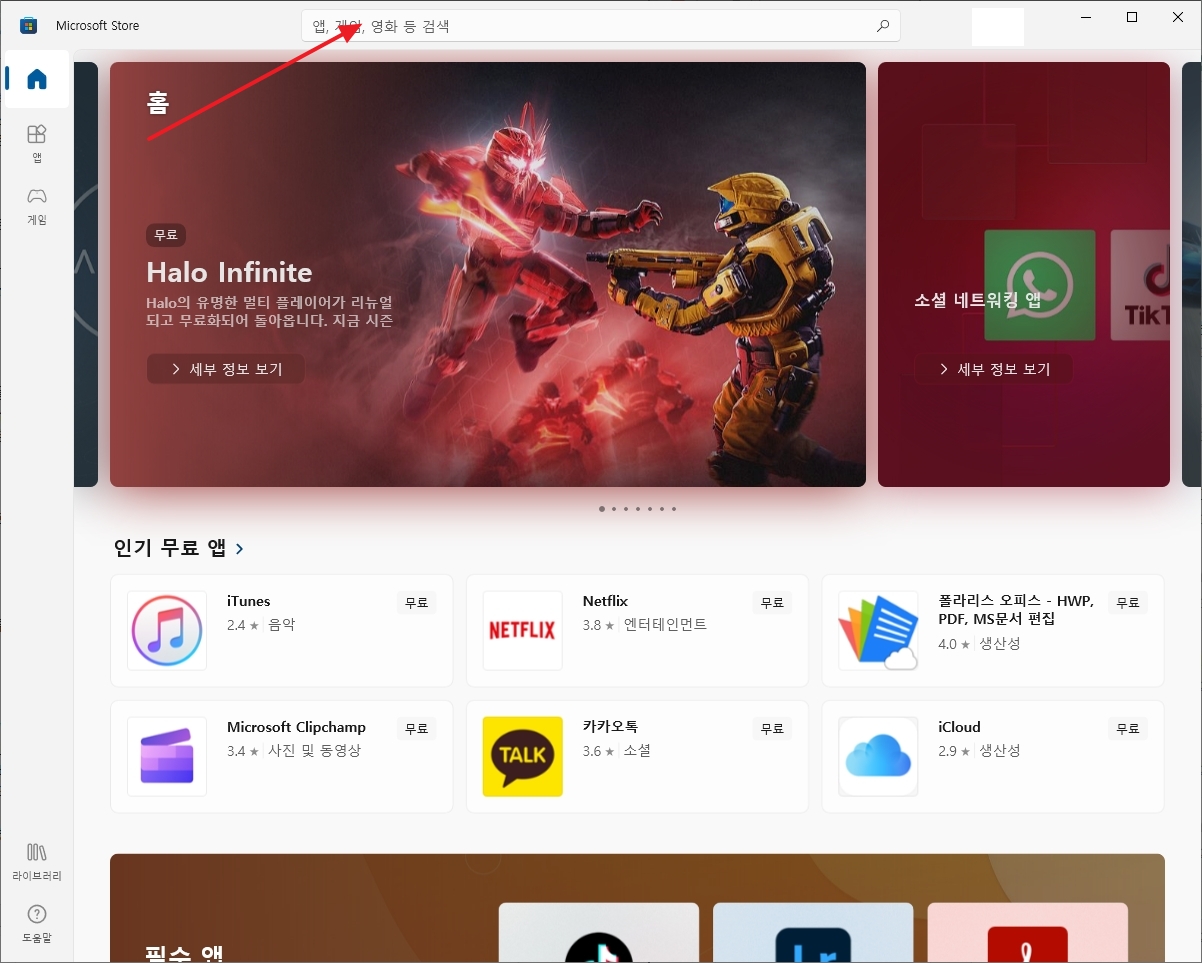 스토어 창이 큼지막하게 열리면, 이제 상단에 있는 검색바를 이용할 차례입니다. 여기에 우리가 찾고 있는 게임 이름을 넣으면 되는데요, 한글로 '프리셀'이라고 쳐도 나오긴 하지만, 정확도를 위해 'Solitaire'라고 영어로 검색하시는 걸 추천드려요.