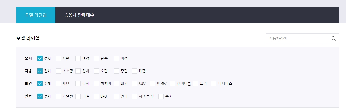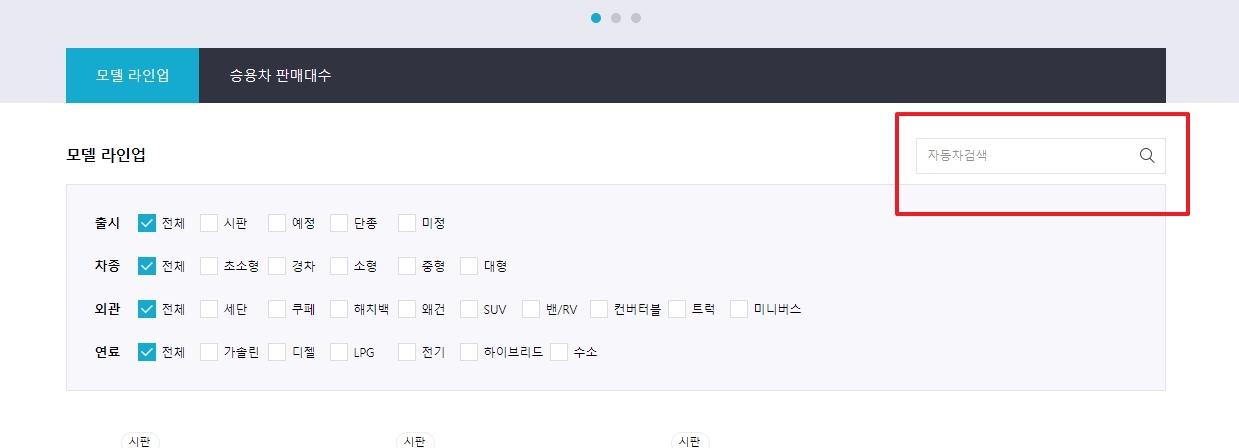 여기에 찾고 싶은 모델명(예: C클래스)을 직접 입력하면 되는데요. 포털 전체 검색이 아니라 이 페이지 내에 있는 DB에서 검색하는 기능이라 아주 빠르고 정확하게 원하는 차종만 딱 골라준답니다.
