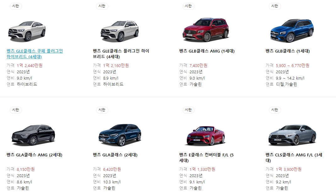 벤츠 가격표 c클래스, e클래스, s클래스 등