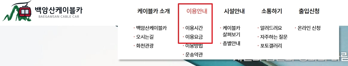 - 하위 메뉴로 ‘이용시간’과 ‘이용요금’을 한눈에 찾을 수 있어요.