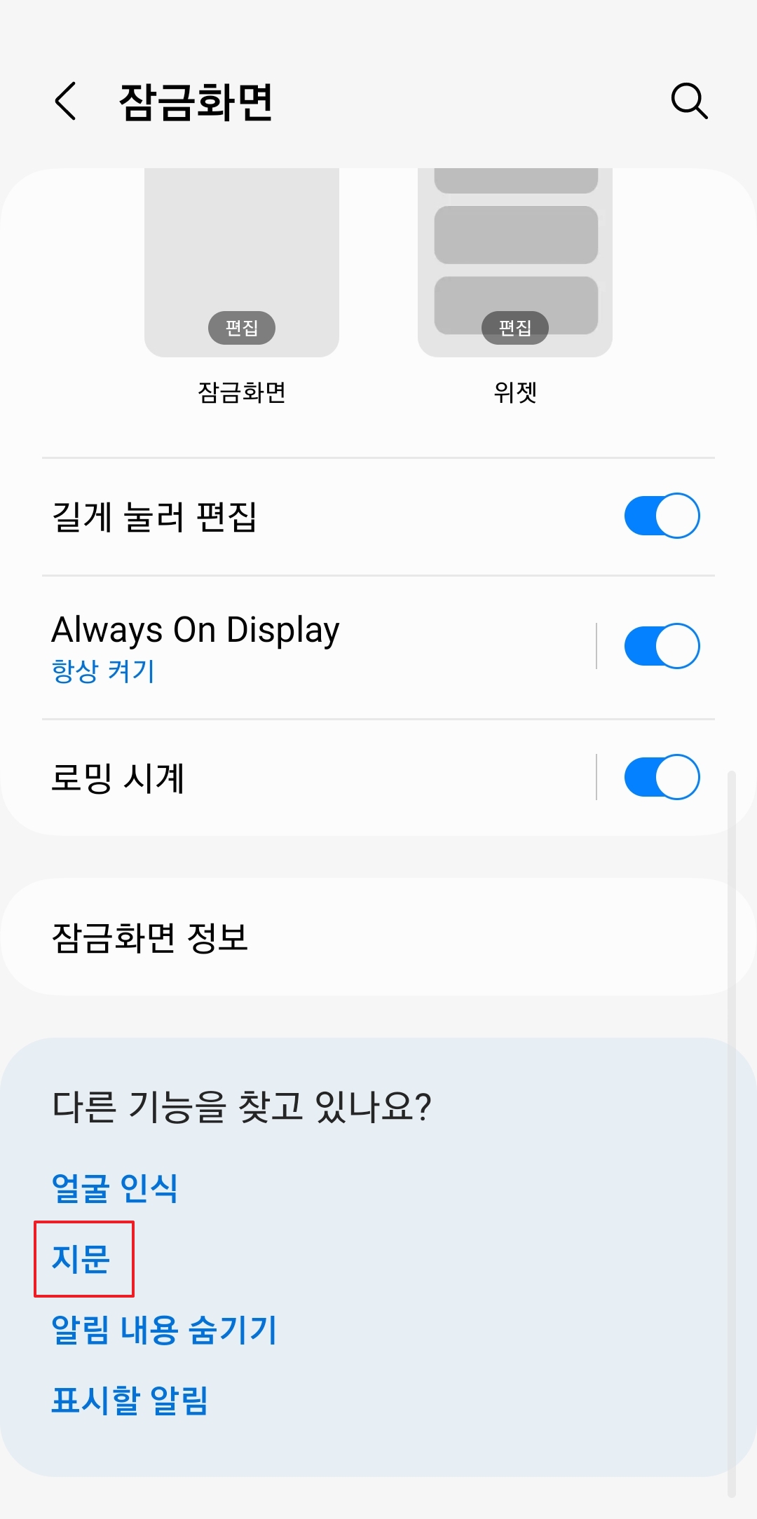혹시 스위치를 켰는데도 반응이 없거나, 이미 쓰고 있는데 가족 지문을 추가하고 싶으신 경우도 있죠? 그럴 땐 설정 메뉴 맨 밑바닥에 있는 '다른 기능을 찾고 있나요?' 부분을 봐주세요.