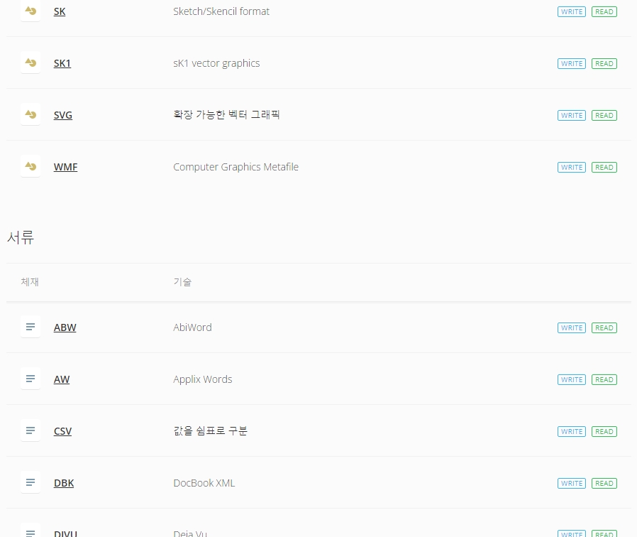 지원하는 포맷 리스트를 쭉 훑어봤는데, 스크롤이 끝도 없이 내려가서 깜짝 놀랐네요. 우리가 흔히 쓰는 JPG, PDF, MP4 같은 건 기본이고 평소에 보기 힘든 희귀한 확장자까지 거의 다 커버한다고 보시면 돼요.