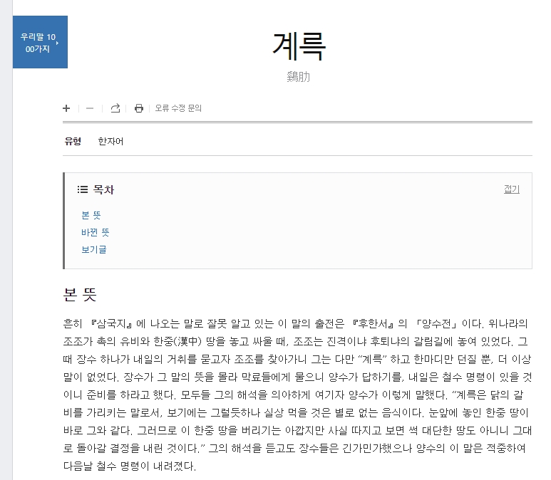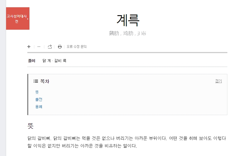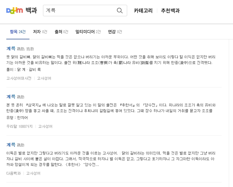 계륵의 뜻을 정확히 알기 위해서는 먼저 포털 사이트의 백과사전 기능을 활용하는 것이 좋아요. 우리가 흔히 쓰는 말이지만 정확한 한자나 유래를 모르는 경우가 많거든요. 다음(Daum)이나 네이버 같은 검색창에 단어를 입력하면 국어사전뿐만 아니라 백과사전 결과까지 한눈에 볼 수 있어 편리해요.