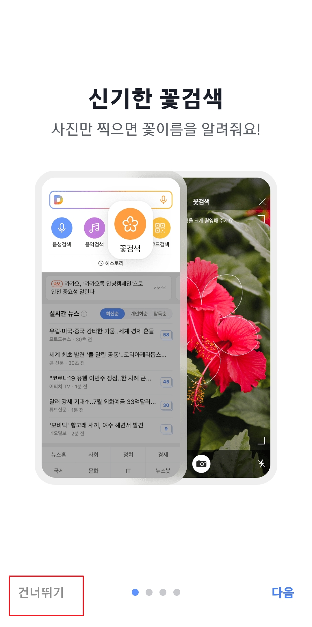 {"alt":"다음 앱 실행 후 초기 설정 및 건너뛰기 화면"}