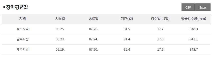 2024 장마철기간