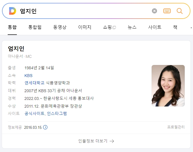 - 엄지인: 1984년생, 33기 공채, 문화체육관광부 장관상 수상