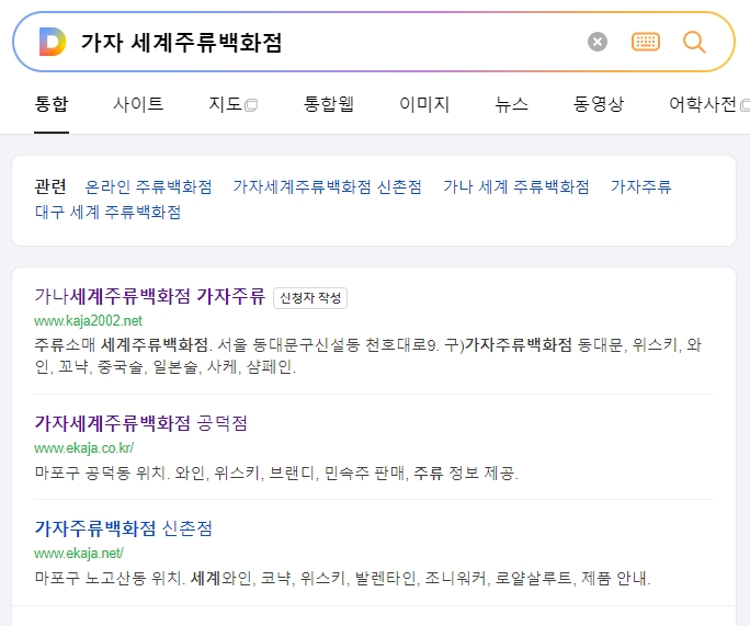 사이트 메인 검색창에 원하시는 술 이름을 치시면 쭉 결과가 나옵니다. 영어로 치셔도 되고 한글로 치셔도 보통 다 잘 나오니까 편하신 대로 검색해서 구경해 보세요.
