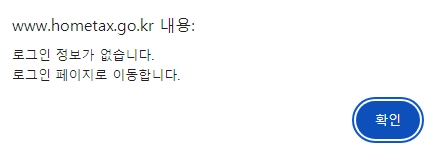 당황하지 마시고 창에 있는 확인 버튼이나 로그인하러 가기 버튼을 가볍게 눌러주시면 됩니다. 이 과정을 거치지 않으면 지출 내역을 볼 수 없으니 꼭 확인을 눌러서 다음으로 넘어가 주세요.