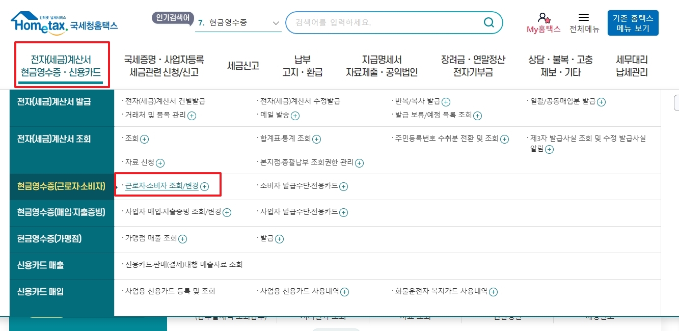 현금영수증 조회 방법
