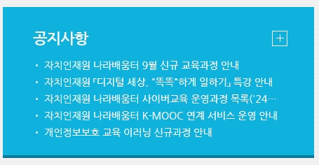 공지사항 게시판은 조금 귀찮으시더라도 가끔씩 챙겨 보시는 걸 추천해 드립니다. 신규 과정이 열린다는 소식이나 알아두면 좋은 특강 일정들이 이곳에 가장 먼저 올라오거든요.