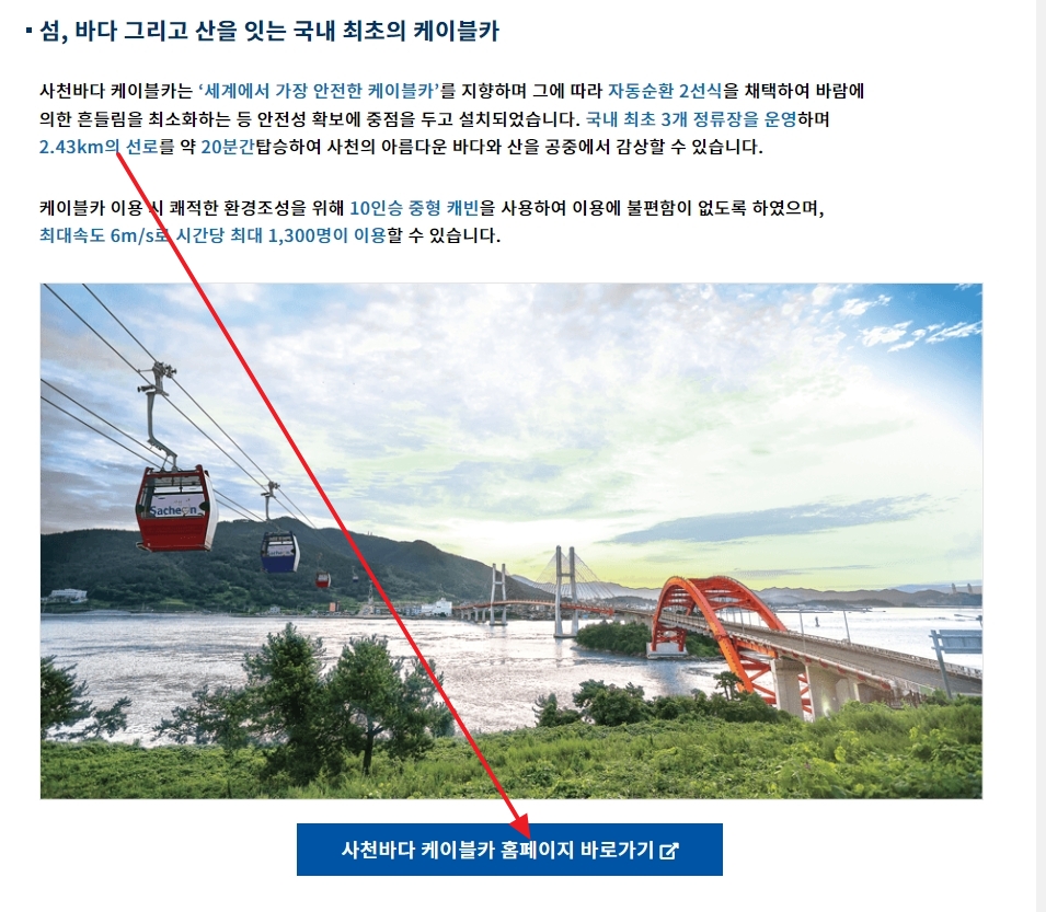사이트 메인 화면 아래쪽을 살펴보시면 여러 가지 아이콘들이 모여 있는 것을 보실 수 있습니다. 여기서 케이블카 모양의 아이콘을 찾아 '자세히 보기'를 눌러주시면 됩니다. 그러면 전용 안내 페이지로 넘어가는 버튼이 나타나는데, 이 버튼을 누르시면 본격적인 안내 화면으로 들어가게 됩니다.