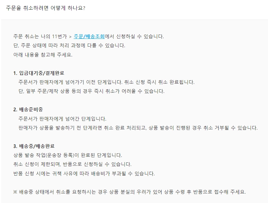 주문 취소나 반품을 원하실 때도 진행 단계에 따라 대처법이 다릅니다. 결제 완료 상태인지, 이미 배송이 시작되었는지에 따라 버튼 하나로 끝날 수도 있고 조금 복잡해질 수도 있죠.
