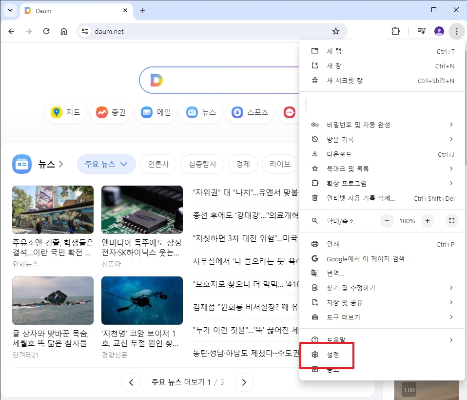 크롬 다음 시작페이지 설정 쉽게 따라하기