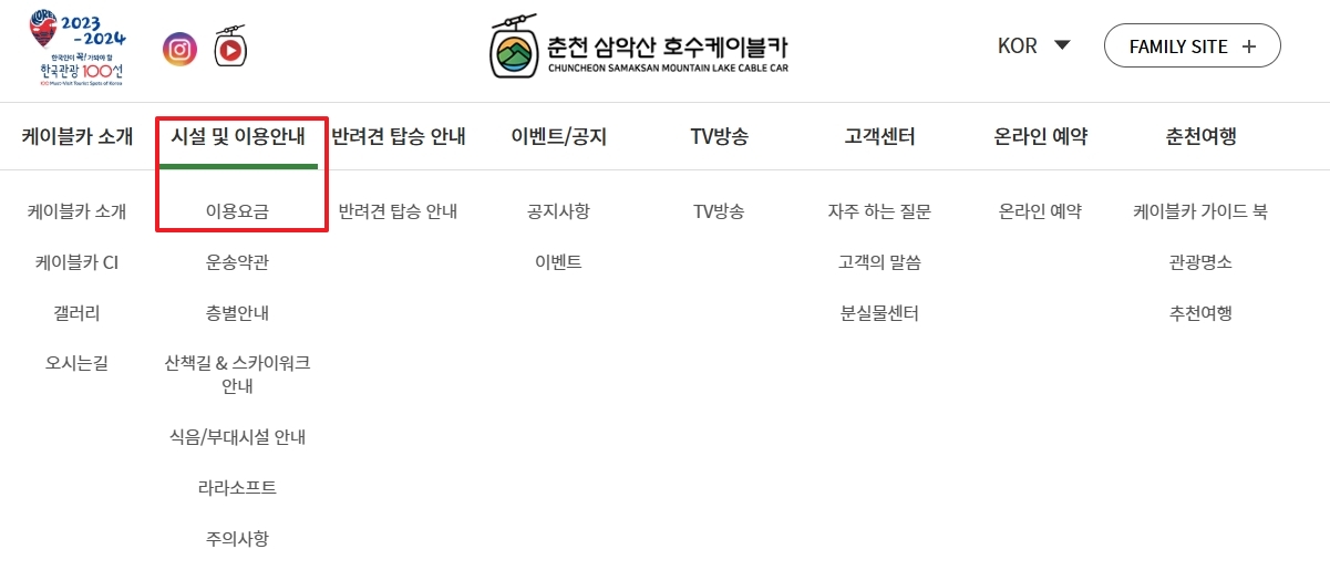 - 하위 메뉴에서 “이용요금”을 선택하면 가격표로 이동합니다.