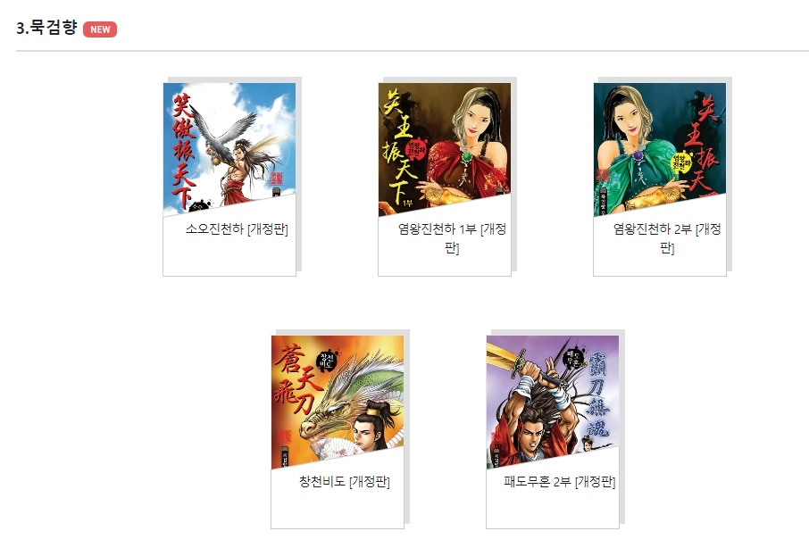 5. 유명한 작가 묵검향은 목록에서 3번째에 위치해 있습니다. 다른 작가들의 작품들도 살펴보면, 장르가 매우 다양하다는 것을 알 수 있습니다. 액션, 로맨스, 판타지 등 여러 장르의 만화를 무료로 즐길 수 있습니다.