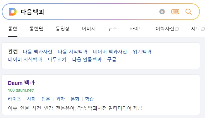 4. 더 자세한 정보를 얻기 위해 다음백과 홈페이지로 들어갑니다. 이 사이트는 다양한 이슈, 인물, 사건, 연감, 전문용어, 백과사전 멀티미디어 등을 제공합니다.