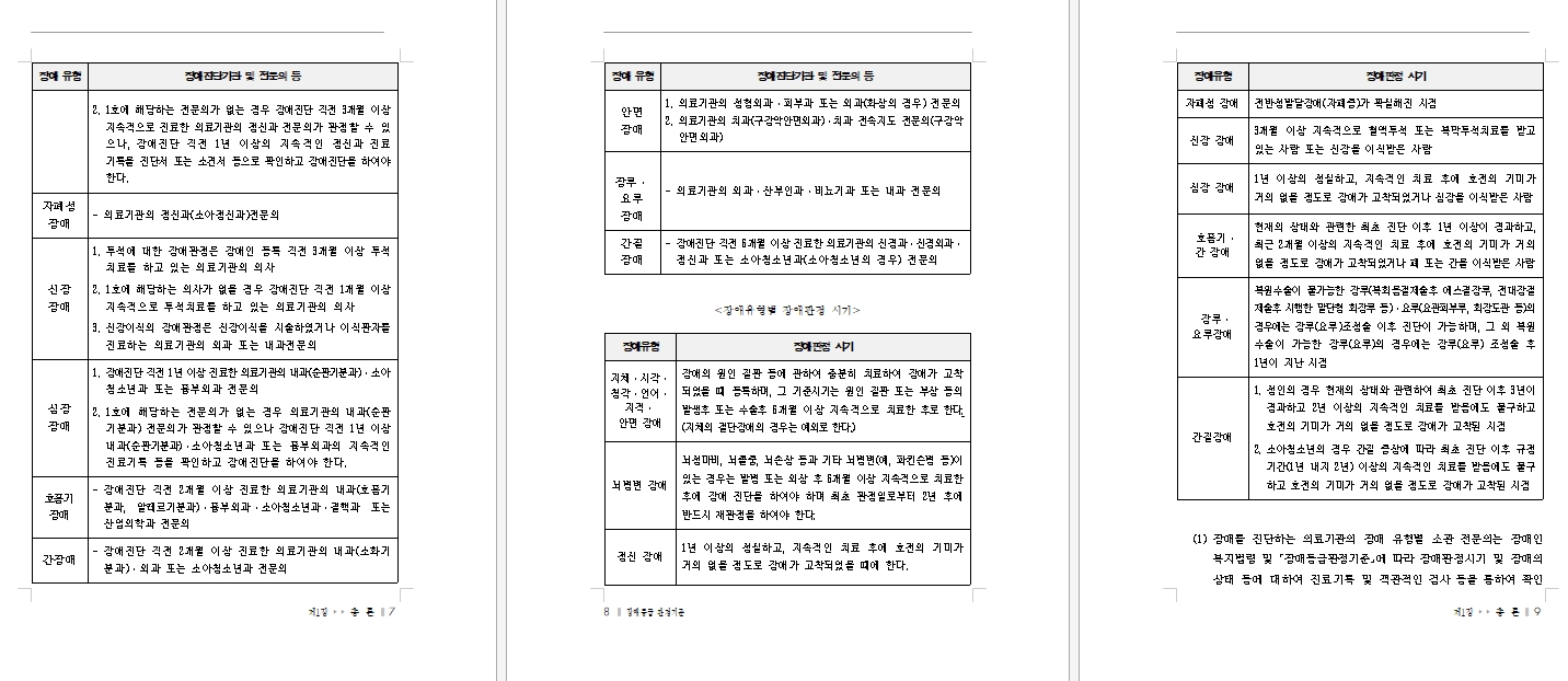 7. 파일 내에서는 각각의 장애가 어떤 조건에서 인정되는지에 대한 자세한 설명이 포함되어 있습니다. 이는 각 장애의 특성과 판정에 필요한 기준을 상세하게 이해하는 데 도움을 줍니다.