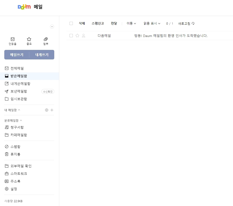 4. Daum 메일 페이지에 들어가면 받은 편지함을 포함한 다양한 메일함이 보입니다. 여기서 필요한 메일을 확인하고, 새로운 메일을 작성할 수 있습니다.