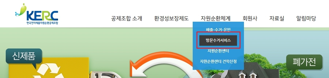 방문수거 서비스 바로가기를 클릭합니다.
