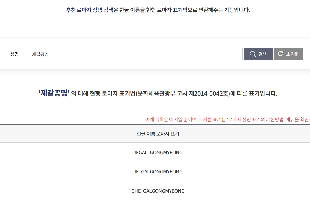 5. 검색 페이지에 도착하면, 이름을 입력하고 검색 버튼을 누르면 됩니다. 이 기능을 이용하면 한국 이름을 정확하게 영문으로 변환할 수 있어요.