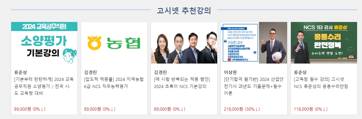 1. 고시넷 홈페이지에 접속하면 다양한 시험 준비와 취업 교육 자료를 만날 수 있습니다. 이 사이트는 특히 공기업 NCS 준비, 대기업 인적성검사 대비, 공무원 시험 준비 등 여러 방면에서 유용한 정보를 제공해요. 공무원 시험을 준비하는 사람들에게는 최신 기출문제와 예상문제를 제공하여 실전 감각을 키울 수 있고, 자격증 취득을 목표로 하는 사람들을 위한 동영상 강의도 마련되어 있어요. 각 강의는 전문가들이 철저하게 준비한 콘텐츠로, 시험 합격에 큰 도움이 됩니다.