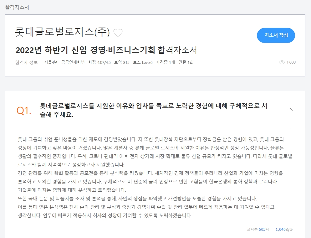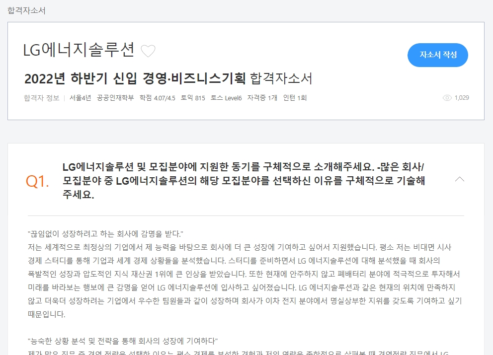 자기소개서를 작성할 때, 특히 처음 작성해보는 사람들에게는 막막할 수 있어요. 이럴 때 가장 좋은 방법 중 하나는 합격자들이 작성한 자기소개서를 참고하는 거예요. 잡코리아 같은 취업 플랫폼에서는 다양한 회사와 업종에 맞춰 실제 합격자들이 작성한 자기소개서를 샘플로 제공하고 있어요. 이 샘플들은 실제로 합격한 자기소개서이기 때문에, 자신이 지원하는 회사나 업종에 맞는 예시를 참고하면 큰 도움이 됩니다.