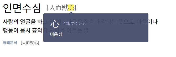 2. 사전의 검색창에 인면수심이라는 단어를 입력하여 검색합니다. 이 단어는 사람의 본성에 대해 깊이 생각하게 만드는 의미를 담고 있습니다.