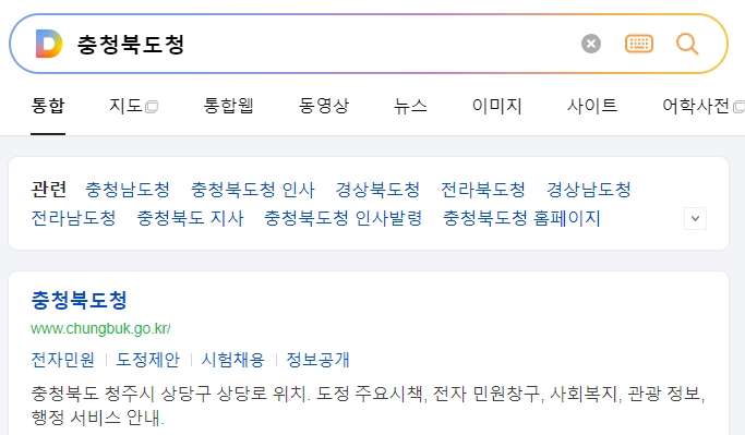 1. 충청북도청 홈페이지로 들어갑니다. 이 사이트는 충청북도 청주시 상당구 상당로에 위치해 있으며, 도정 주요시책, 전자 민원창구, 사회복지, 관광 정보, 그리고 다양한 행정 서비스를 제공합니다.