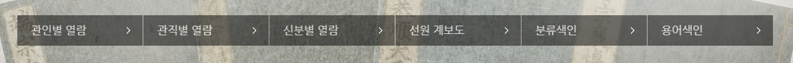 4. 메뉴에는 관인별, 관직별, 신분별 등 다양한 열람 방법이 나와 있어요. 이 메뉴들은 사용자가 필요로 하는 정보에 쉽게 접근할 수 있도록 돕습니다. 각 메뉴를 통해 조선시대의 다양한 기록들을 분류하여 볼 수 있으며, 이를 통해 구체적인 자료를 탐색할 수 있어요.