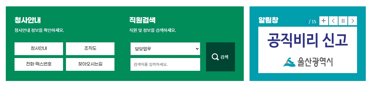 2. 청사 안내와 직원 검색 메뉴가 따로 있어서요. 시청에 대한 정보나 조직도, 전화 및 팩스번호까지도 쉽게 확인할 수 있어요. 담당 업무별로 검색이 가능하니까 필요한 정보를 빠르게 찾을 수 있죠. 그리고 공직비리 신고 등 여러 공지사항도 여기서 바로 확인할 수 있답니다.