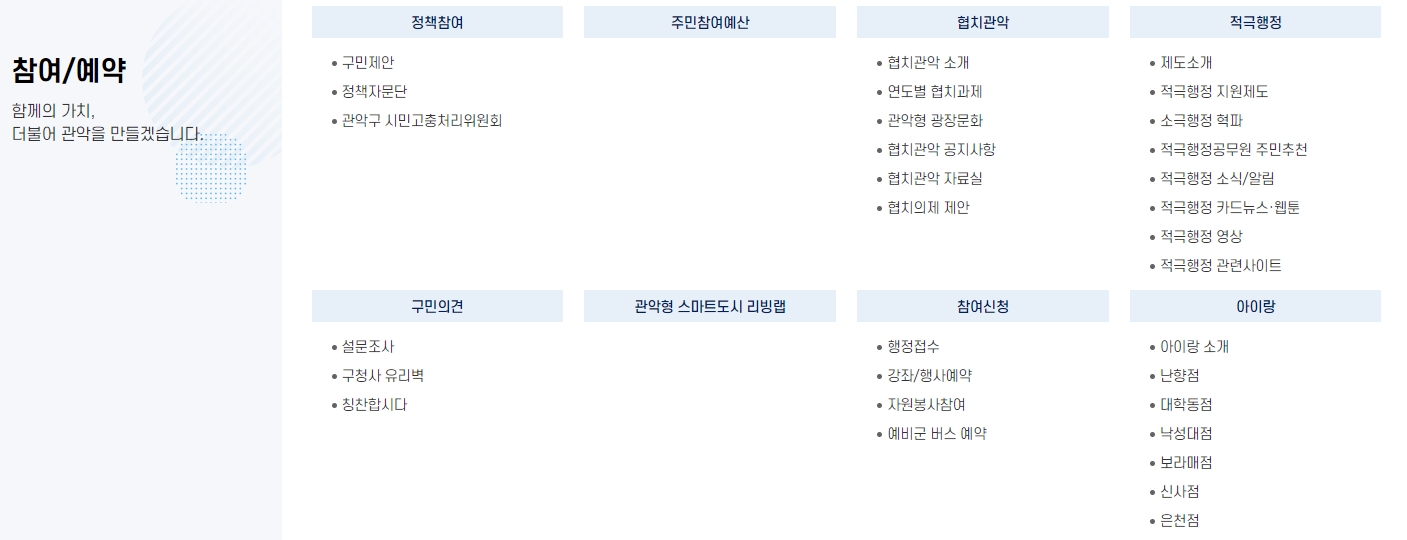 1. 관악구청 홈페이지로 들어가면 서울특별시 관악구 관악로에 위치한 관악구청의 주요 시책과 전자 민원창구, 사회복지, 관광 정보, 그리고 다양한 행정 서비스를 쉽게 확인할 수 있어요. 이 홈페이지는 관악구 주민뿐만 아니라, 서울 시민 누구에게나 유용한 정보를 제공하는 중요한 창구로, 특히 복잡한 민원 절차를 간편하게 처리할 수 있는 기능들이 잘 갖춰져 있어 편리함을 느낄 수 있습니다.