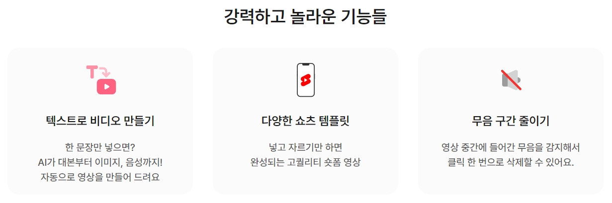 8. 텍스트로 비디오 만들기, 다양한 쇼츠 템플릿, 무음 구간 줄이기 같은 강력한 기능들도 제공된다고 해요. 이 프로그램을 사용하면 영상 제작이 훨씬 간편해질 것 같습니다.