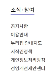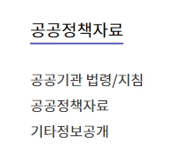 5. 공공정책자료 메뉴에는 공공기관 법령 및 지침, 공공정책자료, 기타 정보공개 항목들이 나열되어 있었습니다. 공공기관 관련 법령과 지침을 쉽게 찾아볼 수 있어서 공공정책에 관심 있는 분들께는 필수적인 정보일 것 같아요.