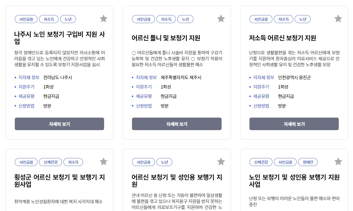 3. 키워드 입력창에 보청기라고 입력하고 검색 버튼을 클릭합니다. 검색창에 보청기라고 입력하니, 여러 관련 서비스가 나왔어요. 특히 보청기 구입비 지원과 관련된 서비스가 주목받고 있죠. 보청기 지원 정책은 중앙부처나 각 지자체에서 제공하는데, 어떤 차이가 있는지 살펴보는 게 중요합니다.