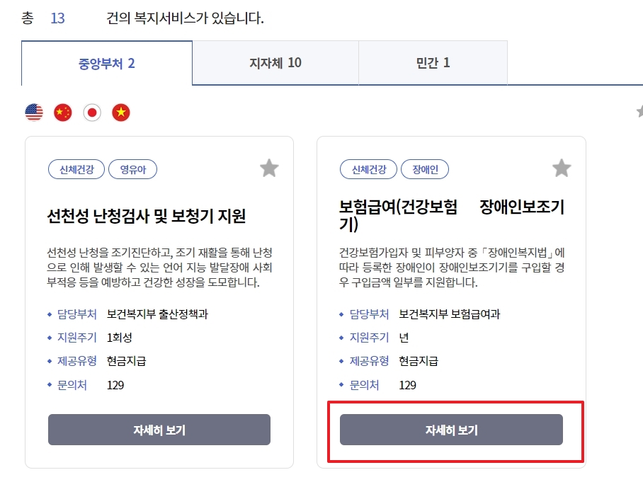 4. 중앙부처 서비스 2건 중 장애인 보조기기의 경우, 장애인 보조기기 구입 시 구입 금액 일부 지원에 관한 내용임. 중앙부처에서 제공하는 보청기 관련 서비스 중 하나는 장애인 보조기기 구입 지원인데, 이는 장애인에 해당하는 경우에만 적용되는 서비스입니다. 해당 사항이 없으신 분들은 지자체 서비스를 확인해야 해요.