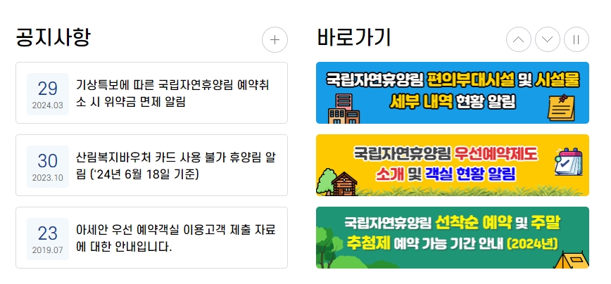 국립 자연휴양림 예약 통합 시스템 홈페이지 바로가기