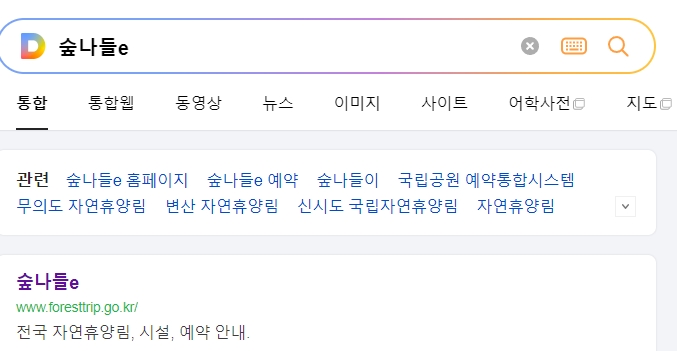 1. 국립 자연휴양림 예약 통합 시스템 홈페이지를 검색해도 바로 나오지 않아요. 숲나들e라고 검색해야 나옵니다. 사이트 이름이 바뀌었기 때문에 주의가 필요해요. 이 홈페이지에서는 전국의 자연휴양림 시설을 한 곳에서 예약하고 관리할 수 있어요.