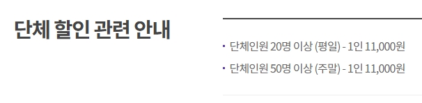 〃〃 단체(평일 20인 이상·주말 50인 이상) 11,000원