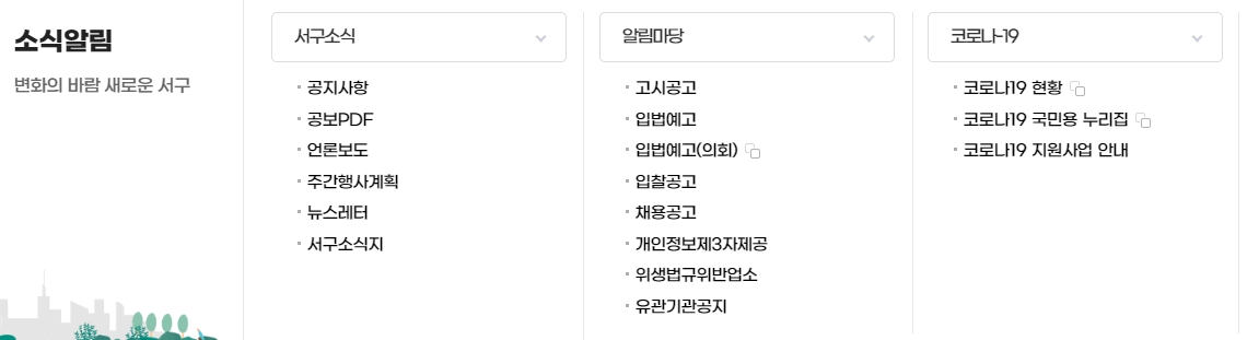 6. 서구청의 전반적인 정보도 함께 제공되어 있어요. 구정 현황이나 주요 연혁, 그리고 각종 위원회 정보 등을 통해 서구 행정에 대한 깊은 이해를 도울 수 있습니다. 주민들에게 서구의 행정 시스템과 관련 정보를 투명하게 공개하는 방식이어서 더욱 신뢰가 가는 서비스입니다.