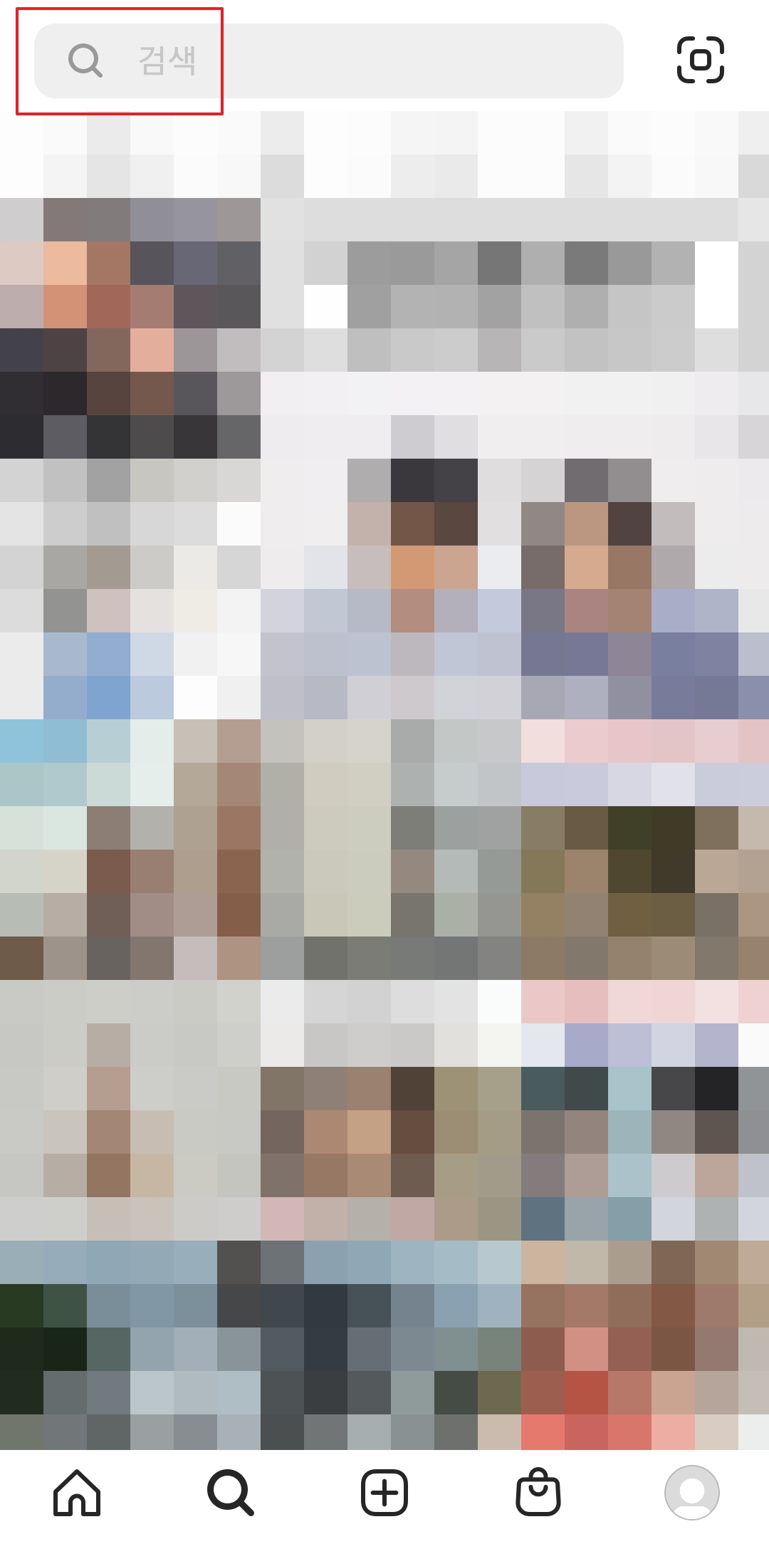 5. 두 번째 방법은 인스타그램을 이용하는 것입니다. 인스타그램의 하단에 있는 돋보기 버튼을 눌러 검색을 할 수 있습니다.