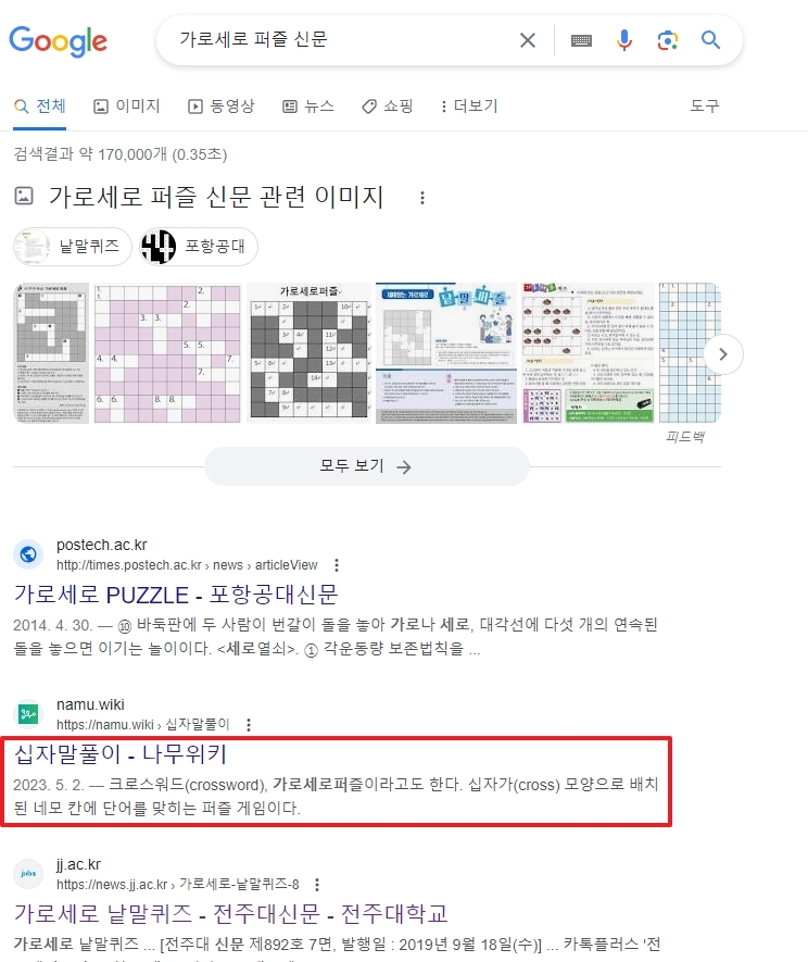 6. 가로세로 퍼즐 신무닝이라고 검색했더니 각 대학교 신문에도 있었는데, 저는 나무위키에서 좀 더 자세한 정보를 찾아봤어요.